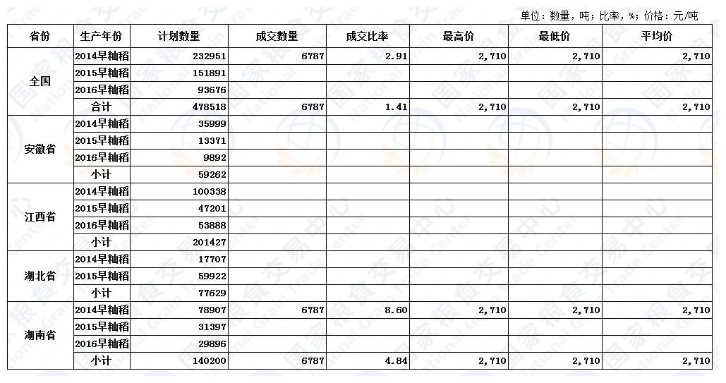 10月18日最低收购价稻谷交易结果